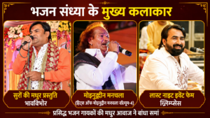 भजन संध्या का आगाज गणपति वंदना व माताजी की आरती के साथ हुआ भजन संध्या में गुजरात के भजन गायक नारायण का संदेश ठाकर, मोइनुद्दीन मनचला, महेंद्र सिंह राठौड़, रामेश्वर माली, उपस्थित मधुबाला राव, मशरूम मनचला, मोहित राज, शुभम सहित कलाकारों ने भजनों की प्रस्तुति दी। भक्त पूरी रात भजन व गीतों पर झूमे। इस अवसर पर आसपास के गांवों से बड़ी संख्या में श्रद्धालु मौजूद थे।