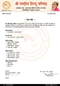 श्री राष्ट्रीय हिन्दू परिषद राष्ट्रीय कार्यकारिणी का विस्तार, सभी प्रदेशो की कमेटियां जल्द बनाने के निर्देश, इसी माह में होगा राष्ट्रीय सदस्यता अभियान